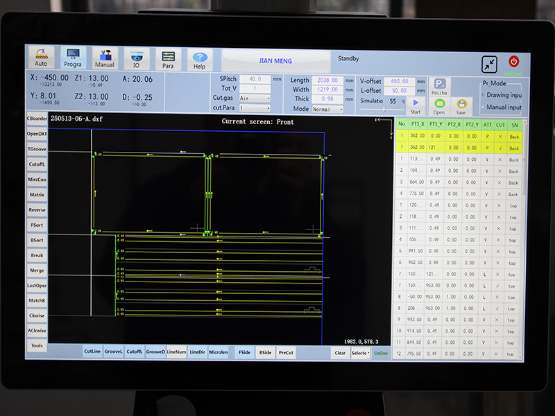 جيانمينغ عمودية والليزر آلة مزيجة، مع سرعة قطع الأخدود تصل إلى 120 م / دقيقة ودقة التكرار من ± 0.02 مم، متوافقة مع مختلف الألواح مثل الفولاذ المقاوم للصدأ وسبائك الألومنيوم. نظام التشديد التلقائي الهيدروليكي ، شاشة لمس صناعية 21 بوصة مع برمجة نقرة واحدة ، تساعد في معالجة ما قبل الانحناء الفعالة والدقيقة.