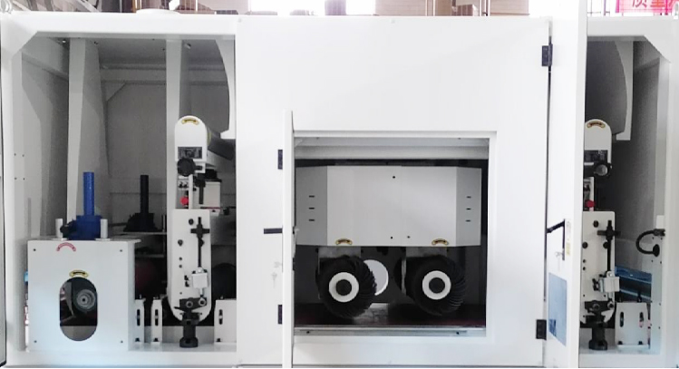 محطات العمل: R + P + R + T (حزام واسع + فرشاة الأسطوانة + حزام واسع + عجلة تلميع)