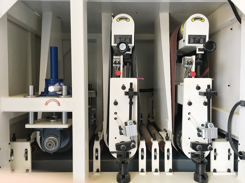 الجهاز مجهز بوحدتين واسعة الحزام الرملي. مدفوعة بالبكرات الطحن ، تدور أحزمة الرمال بسرعة عالية لإزالة جزيئات الصخرة ، ومقياس الأكسيد ، والثغرات الكبيرة ، وغيرها من العيوب من سطح قطعة العمل ، بينما تقوم في نفس الوقت بعلاج رسم الأسلاك. كما تتميز بوحدة أسطوانة تلميع تدور بسرعة عالية وتتصل بالاحتكاك بسطح قطعة العمل ، مما ينتج تأثير رسم أسلاك موحد ودقيق.
